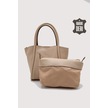Hakiki Deri Kadın Organizerlı El Çantası Vizon Smr9206 Vizon