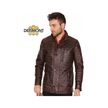 Hakiki Deri Kahverengi Neymar Işlemeli Erkek Deri Ceket Kahve