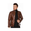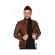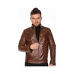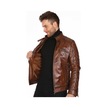 Hakiki Deri Kahverengi Neymar Omuz Kol Işlemeli Erkek Deri Ceket Kahverengi