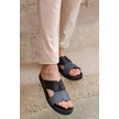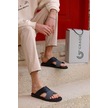 Hakiki Deri Kalın Bantlı Çift Renkli Ortopedik Erkek Terlik