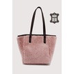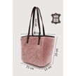 Hakiki Deri Kürklü Kadın El Çantası Pudra Smr9152 Pudra