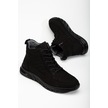 Hakiki Deri Nubuk Erkek Bot Siyah Elastik Bağcıklı Yan Baskılı-3474 Siyah