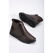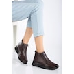 Hakiki Deri Ortopedik Kadın Bot Kahve 2 Fermuarlı Dolgu Tabanlı-3298 Kahve