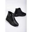 Hakiki Deri Ortopedik Kadın Bot Siyah 2 Fermuarlı Dolgu Tabanlı-3294 Siyah