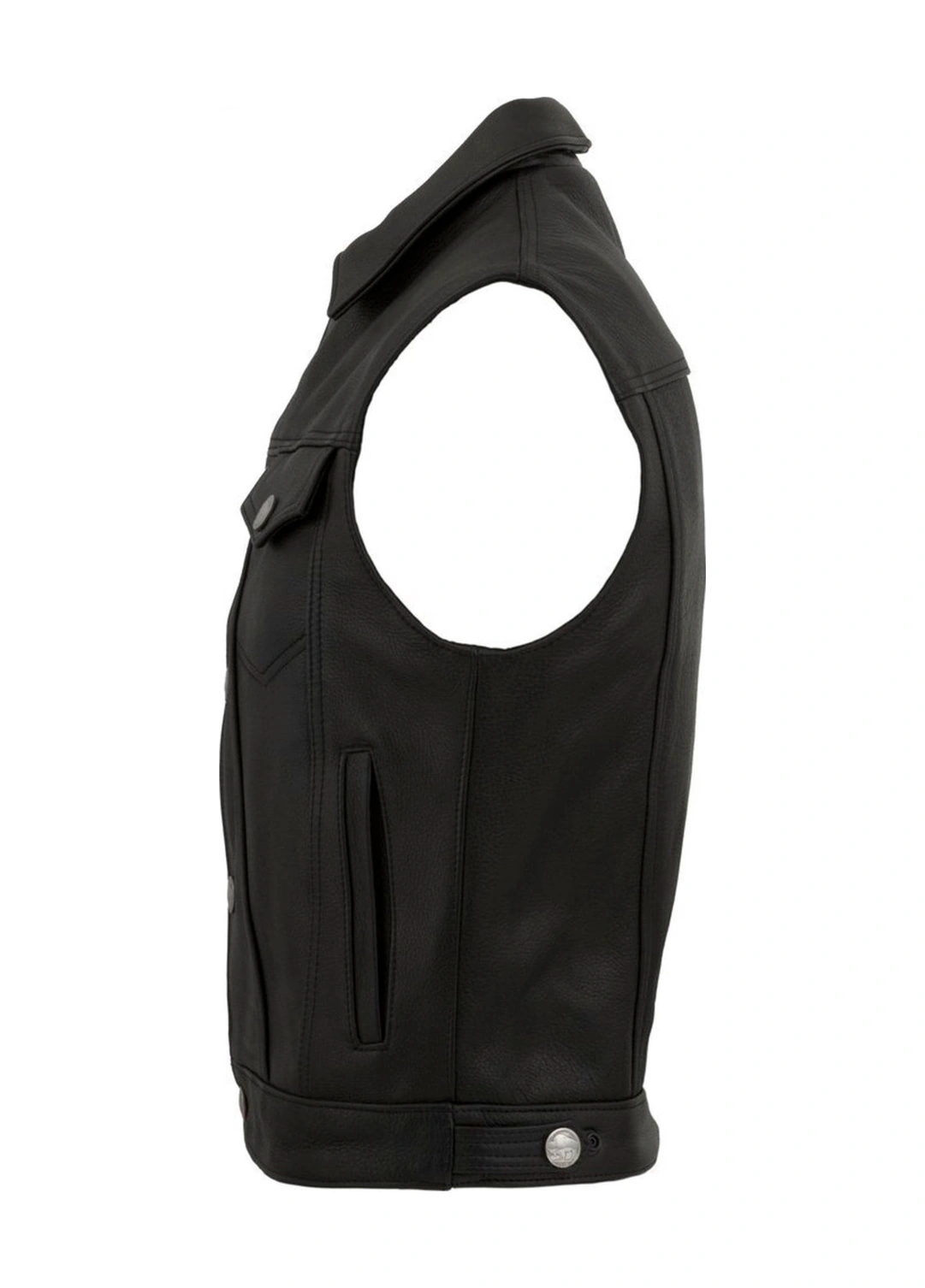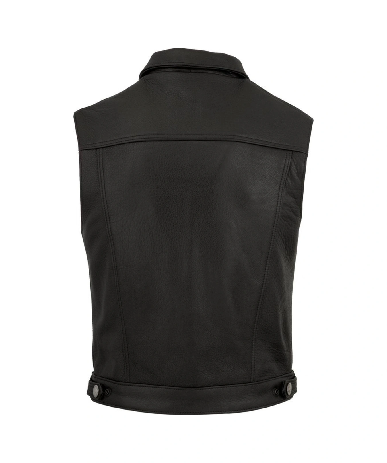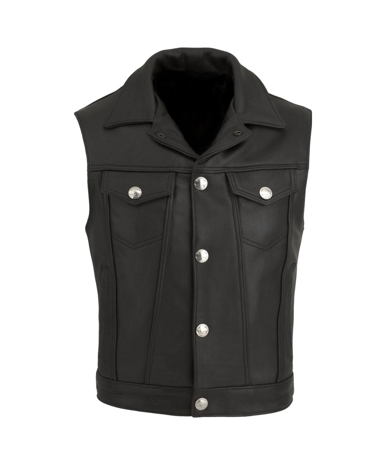 Hakiki Deri Siyah Düğme Detaylı Erkek Deri Yelek Siyah