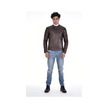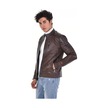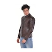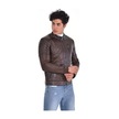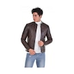 Hakiki Deri Siyah Erkek Deri Mont Hakim Yaka Üç Cepli Fermuarlı Fermuarlı Deri Ceket Kahverengi