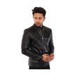 Hakiki Deri Siyah Erkek Deri Mont Omuz Çizgi Detaylı Üç Cepli Fermuarlı Deri Ceket Siyah
