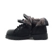Hakiki Deri Siyah Gerçek Kürklü Bağcıklı Fermuarlı Çocuk Botu Siyah