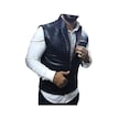 Hakiki Deri Siyah Hakim Yaka Yandan Cepli Erkek Deri Yelek Siyah