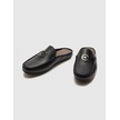 Hakiki Deri Siyah Tokalı Erkek Terlik - Siyah