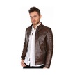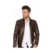 Hakiki Kuzu Derisi Fermuarlı Erkek Hakim Yaka Ceket Omuz İşlemeli Ceket Kahverengi Kahve