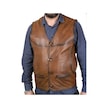 Hakiki Kuzu Derisi Kahverengi Leon Düğmeli Erkek Deri Yelek Taba