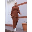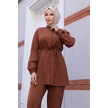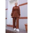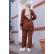 Hakim Yaka Detaylı Tesettür Kahverengi Takım Kahverengi