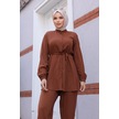 Tesettür İkili Takım Uzun Tunik Bol Paça Pantolon 4006-kahve Kahverengi