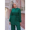 Hakim Yaka Detaylı Tesettür Yeşil Takım Yeşil