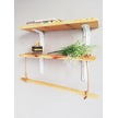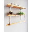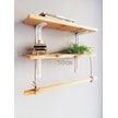 Halatlı Ahşap Dekoratif Duvar Rafı 50x11 Cm, Metal Beyaz Ayaklı