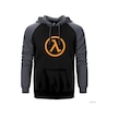 Half Life Logo Pocket Gri Reglan Kol Kapşonlu Sweatshirt Gri