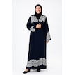 Halkalı Desenli Kruvaze Namaz Elbisesi Yandan Bağlamalı, Rahat Kesim 36 46 Beden Lacivert