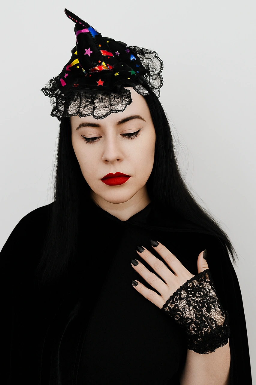 Halloween Cadılar Bayramı Taç Mini Cadı Şapkası Tüllü Renkli Model Parti Aksesuarı