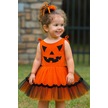 Halloween Cadılar Bayramına Özel Turuncu -siyah Arkası Lastikli Tokalı Balkabağı Kız Kostümü