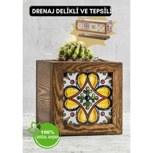 Halohope El Yapımı 1 Meksika Çinili Dekoratif Modern Ahşap Dikdörtgen Bahçe Balkon Saksı Saksılık Çiçeklik