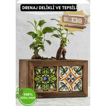 Halohope El Yapımı 2 Meksika Çinili Dekoratif Modern Ahşap Dikdörtgen Bahçe Balkon Saksı Saksılık Çiçeklik