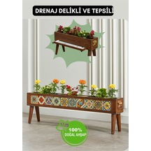 Halohope El Yapımı Ayaklı 10 Çinili Dekoratif Modern Ahşap Dikdörtgen Bahçe Balkon Saksı Saksılık Çiçeklik