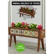 Halohope El Yapımı Ayaklı 6 Çinili Dekoratif Modern Ahşap Dikdörtgen Bahçe Balkon Saksı Saksılık Çiçeklik