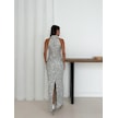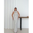 Halter Yaka Payetli Gümüş Abiye Elbise Gümüş