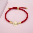 Hande İsmine Özel İpek Örgülü 14 Ayar Altın Plakalı Nar Motifli Hediye Bileklik-323isim-kırmızı Altın