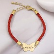 Hande İsmine Özel Turuncu Derili Kelebek Motifli 14 Ayar Altın Plakalı Hediye Bileklik-502isim Hande