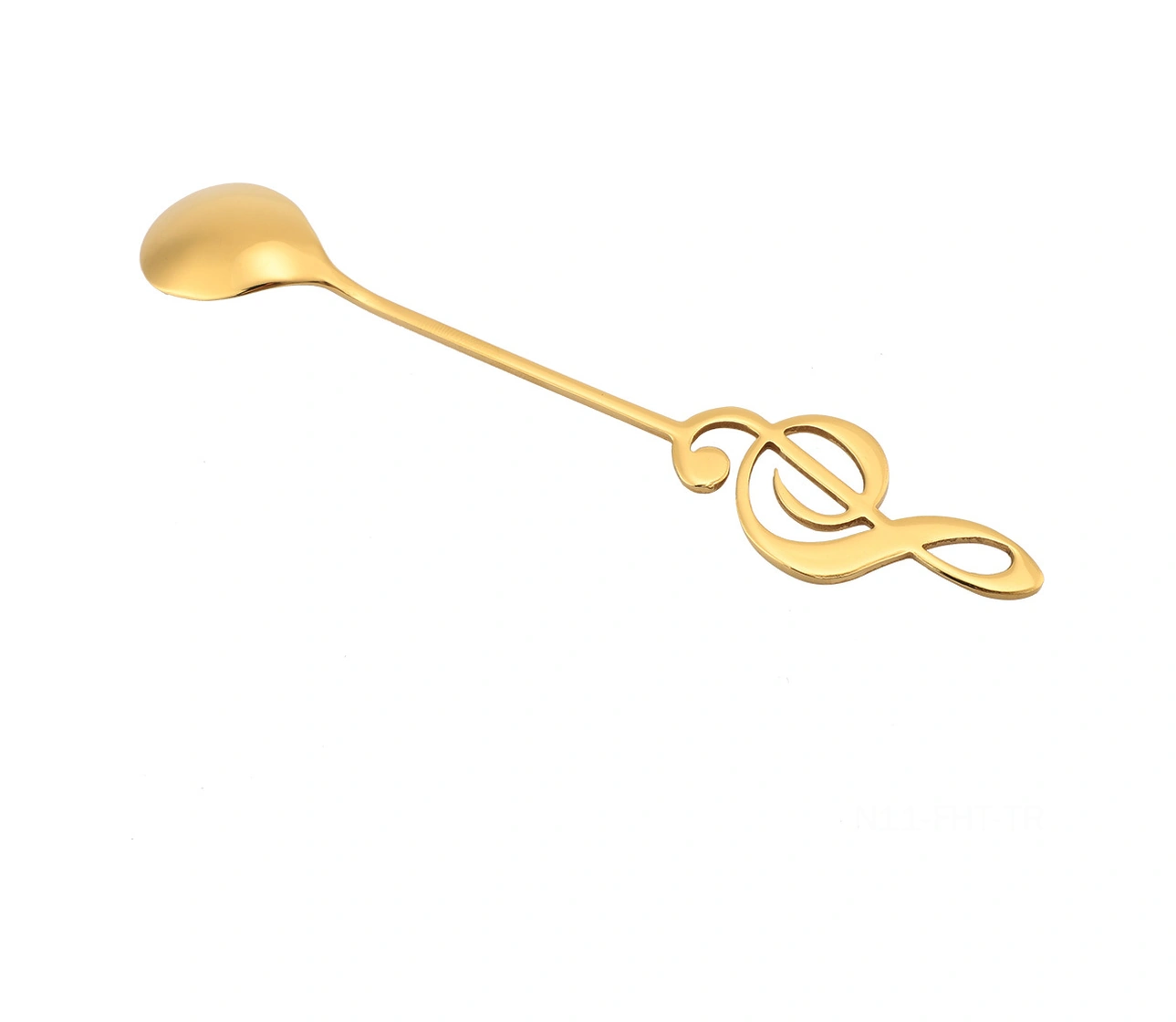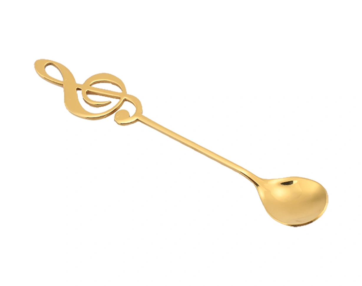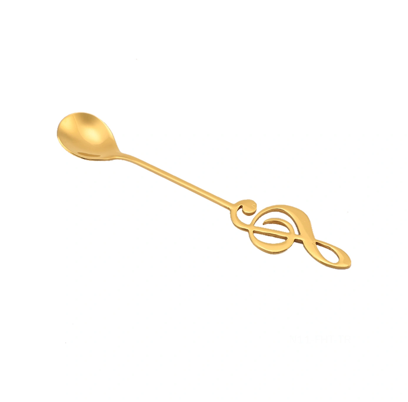 Hangfox 304 Paslanmaz Çelik Müzik Notası Desenli Kahve Karıştırıcı Kaşık - Gümüş Renkli Tatlı Ve Pasta Kaşığı Altın