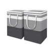Hangfox 75l Büyük Gri Siyah Çizgili Kumaş Depolama Sepeti - Yüksek Dayanıklı, Katlanabilir, Uzun Çantanaklı, Ev İçi Kirli Giyim Ve Battaniye Saklama Aleti Siyah Ve Gri