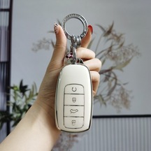 Hangfox Chery Anahtar Kılıfı H Tipi Akıllı 4 Tuşlu Süt Beyazı - Yüksek Kaliteli Materyal, Dayanıklı, Güneşinizi Kolaylaştırır Tek Set + Gümüş Zırh Kanca