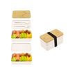 Hangfox Doğal Bambu Kapaklı Çift Katlı Microwave Uyumlu Çalışan/öğrenci Bento Kutusu - Sağlıklı Yemek Taşıma Kutusu Isı Saklama Çantası Dahil Beyaz