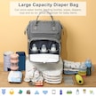 Hangfox Unisex Çift Omuzlu Bebek Çantası, Isı Yalıtımlı Biberon Cepler, Bebek Arabasına Takılabilir, Usb Şarj Portu, Su Geçirmez Nilon, Halka Gri Gri