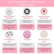 Hangfox Usb Şarjlı 6'lı Yüz Temizleme Aleti Seti - Dürtmeyelik Fırçalalar, Masaj Ve Makyaj Temizleme - Su Geçirmez, 3 Seviye, Batarya İle - Gül Renkli