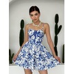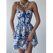 Neşeli Butik Kadın Desenli Mini Şifon Elbise Rssn37 - Mavi Mavi