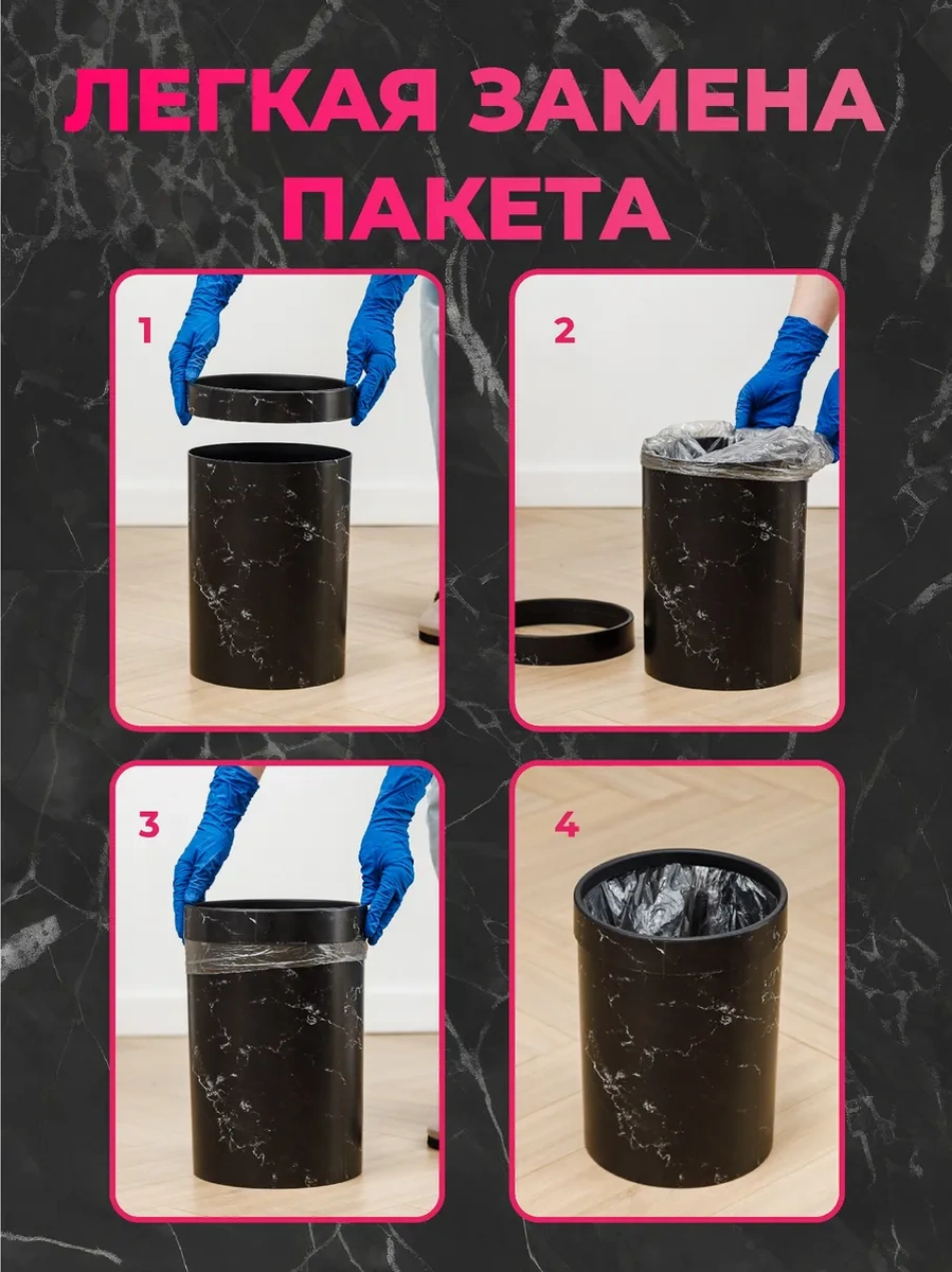 Happıdome Mutfak Çöp Kovası 12 Litre 342439981 Siyah Mermer
