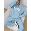 Happiness Eşofman Takımı Sweatshirt Jogger - Bebe Mavi Baskılı Oversize Şardonlu Kapüşonlu Bebe Mavi