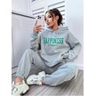 Happiness Eşofman Takımı Sweatshirt Jogger - Gri Baskılı Oversize Şardonlu Kapüşonlu Gri