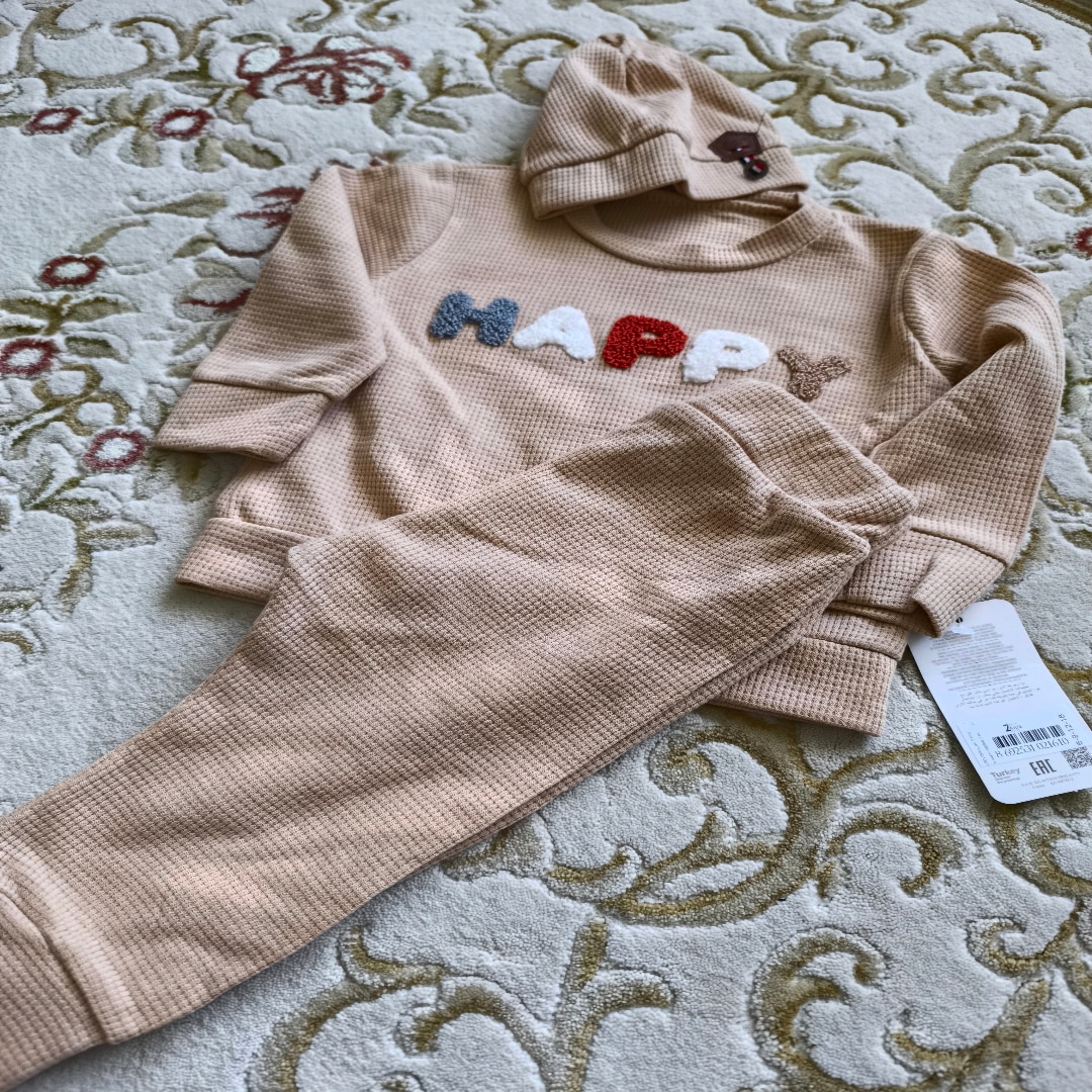 Happy Nakışlı Pamuklu Erkek Bebek Takım 2'li - Kahverengi