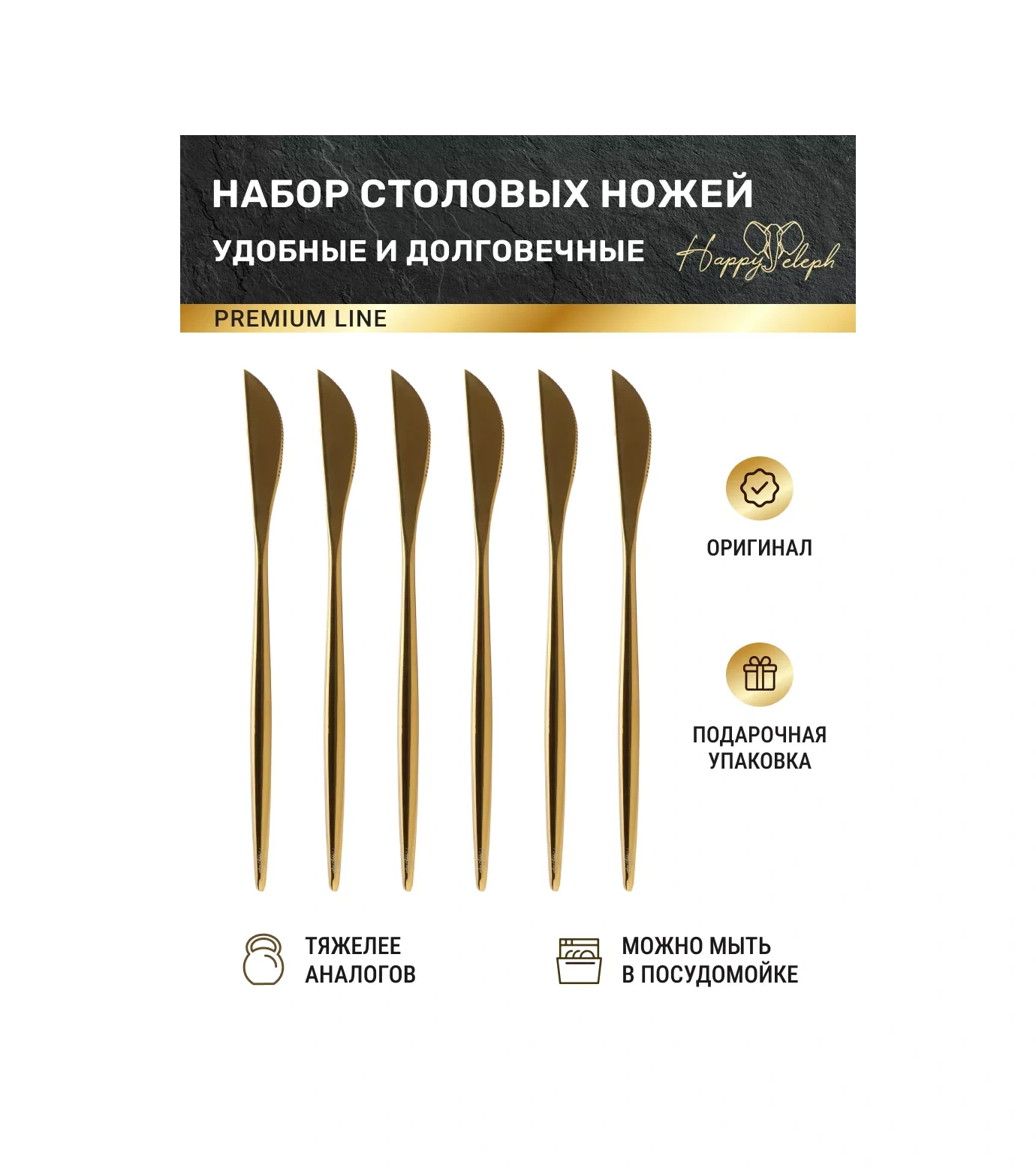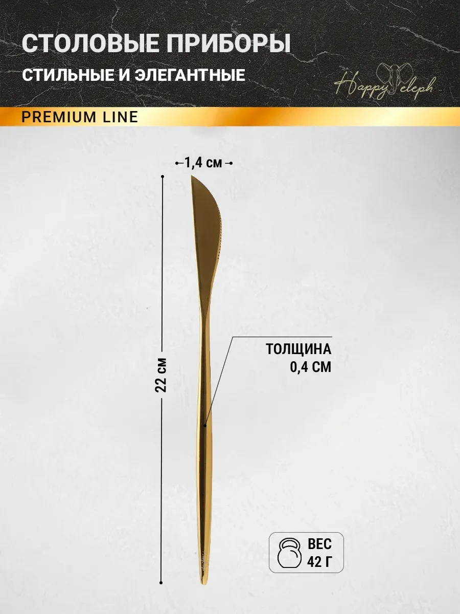 Happyeleph 6 Parçalı Yemek Bıçağı Seti 179917017 Altın Rengi