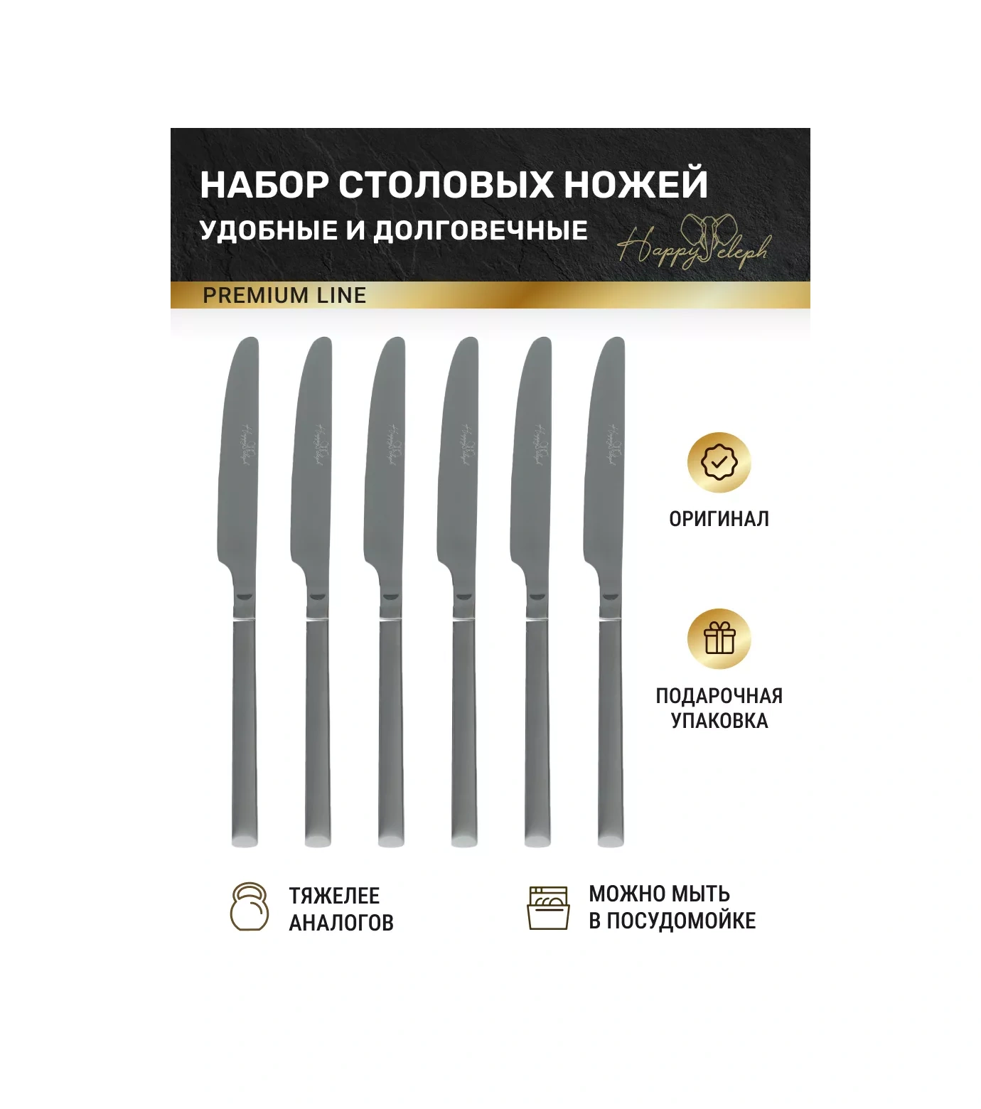 Happyeleph 6'lı Yemek Bıçağı Seti 199367188 Gümüş