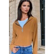 Hardalyarım Fermuarlı, Kapüşonlu, Casual Bluz HARDAL