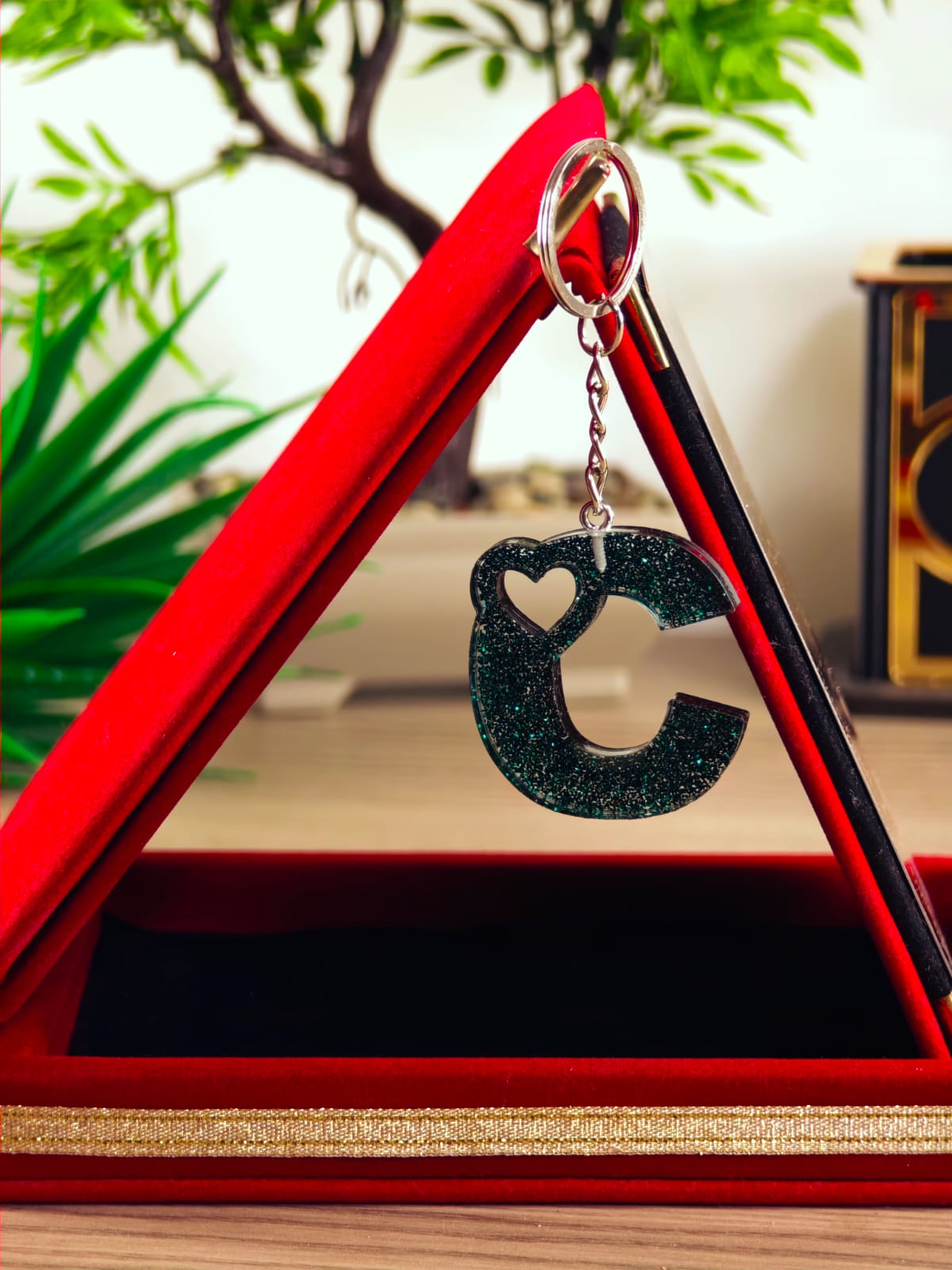Harfli Anahtarlık Epoksi Kişiye Özel Yapım El Yapımı Harf Anahtarlık Kalp Model Özel Tasarım Hediyelik Ürün Kalp Desenli Simli Anahtarlık Açık Mavi