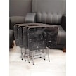 Harmony Katlanabilir Siyah Zigon 4'lü Sehpa Takım Paslanmaz Gri Metal Ayaklı Siyah