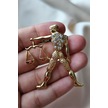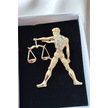 Mineli Turkuaz Ve Krem Balık Figürlü Gold Renk Kadın Broş