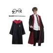 Harry Potter Gryffindor Kapişonlu Çocuk Kostüm + Asa + Gözlük Seti 9-10 Yaş