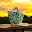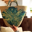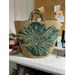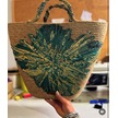 Hasır Çanta, Plaj Çantası, Tasarım Çanta, Yeşil Desenli El Çantası Yeşil - Kahverengi